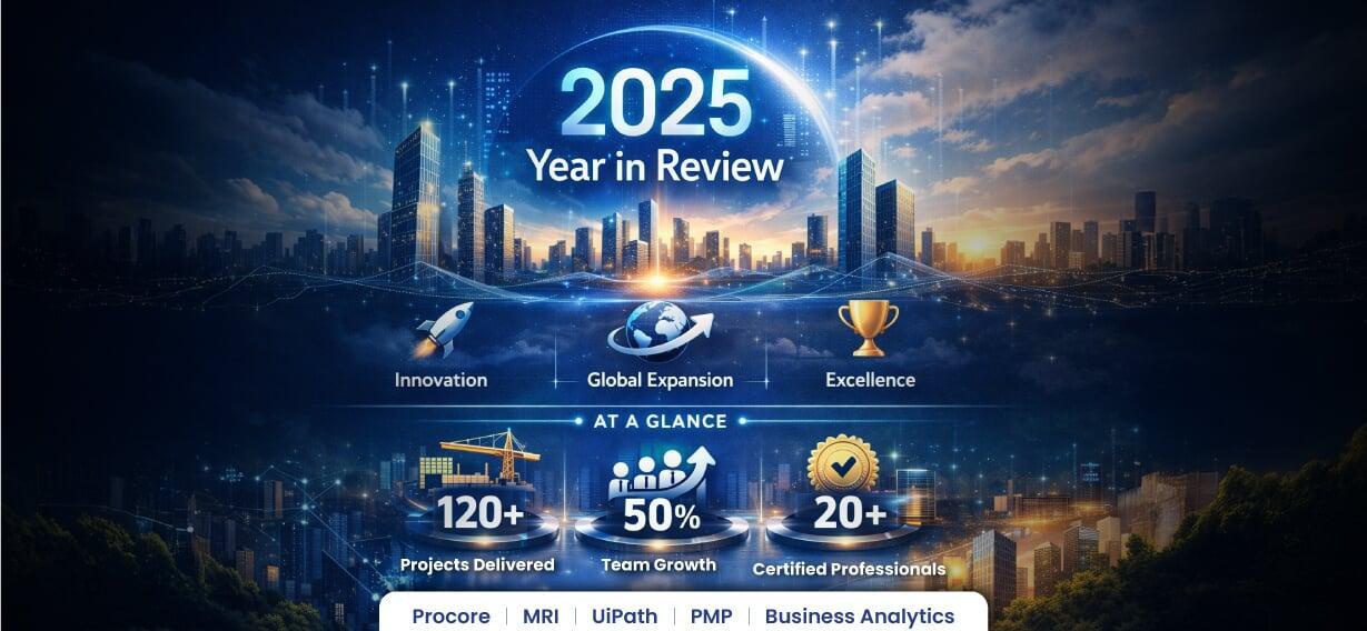 2025 was a landmark year for professional development. We now have 20+ certified professionals across Procore, MRI, UiPath, PMP, and Business Analytics.